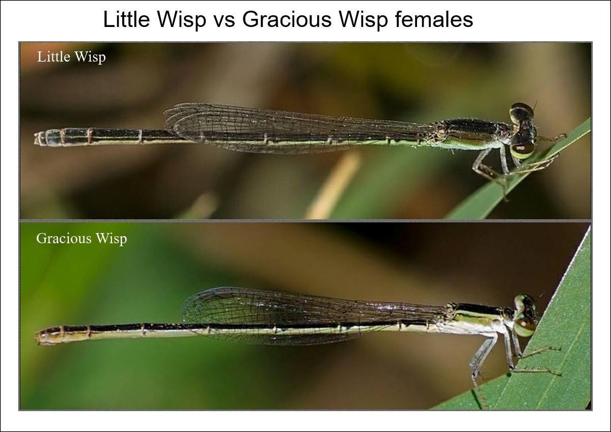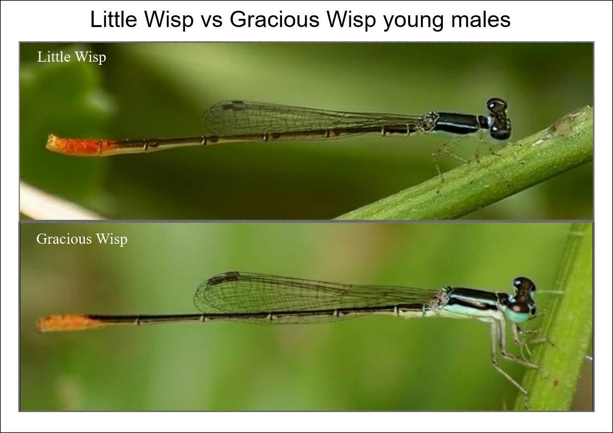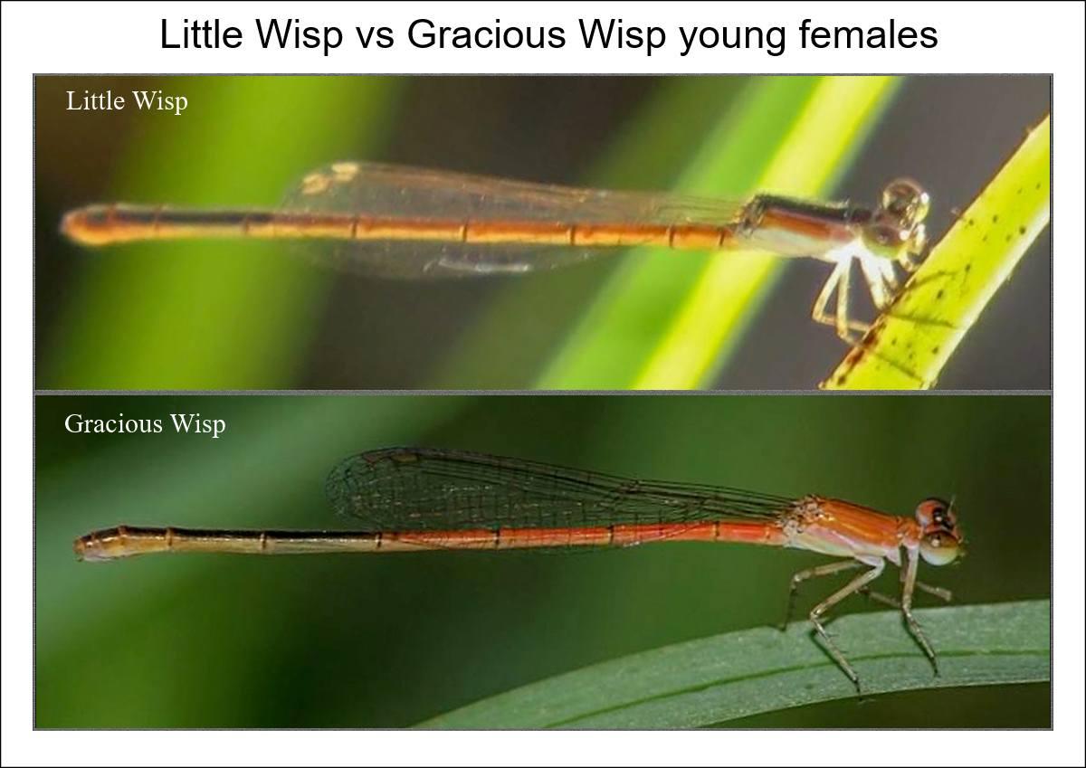 | Agriocnemis falcifera - White-masked Wisp | Agriocnemis gratiosa - Gracious Wisp | Agriocnemis pinheyi - Pinheys Wisp | Agriocnemis ruberrima - Orange Wisp | |||
