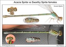 | Pseudagrion acaciae - Acacia Sprite | Pseudagrion commoniae - Black Sprite | Pseudagrion massaicum - Masai Sprite | Pseudagrion sublacteum - Cherry-eye Sprite | |||